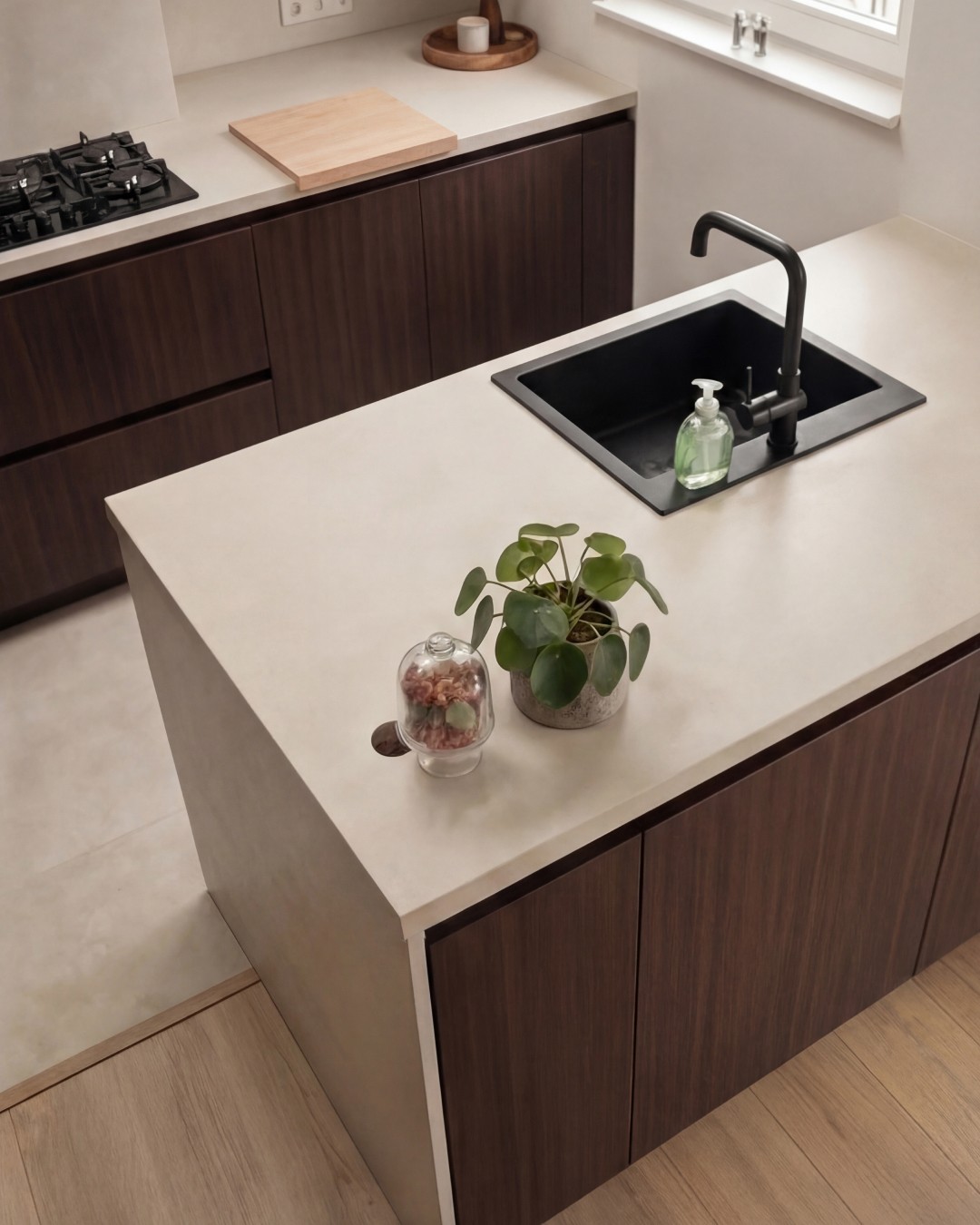 Warda was geen fan van haar koude, witte keuken die niet echt aansloot bij de warme sfeer in de rest van haar interieur. Daarom koos ze ervoor om haar keuken te laten wrappen, zodat alles één mooi geheel werd. We hebben het werkblad, de achterwand en de fronten volledig aangepakt voor een warmere, meer stijlvolle uitstraling.